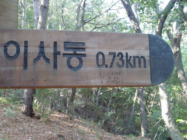 시루봉을 지나면 오도산방면 표시가 나타나리라고 생각되는 지점에 그런 표지판은 없고 이사동이라는 방면표지만 두개 정도 지나게 된다. 나는 근처에 있는 아저씨가 어디가냐며 알려주셔서 제대로 가긴 했지만, 그런 분이 없었다면 좀 당황스러웠을 것이다. 위 사진은 조금 더 가서 처음보게되는 오도산 방면 표지판이다. 반가운 마음에 한 장.